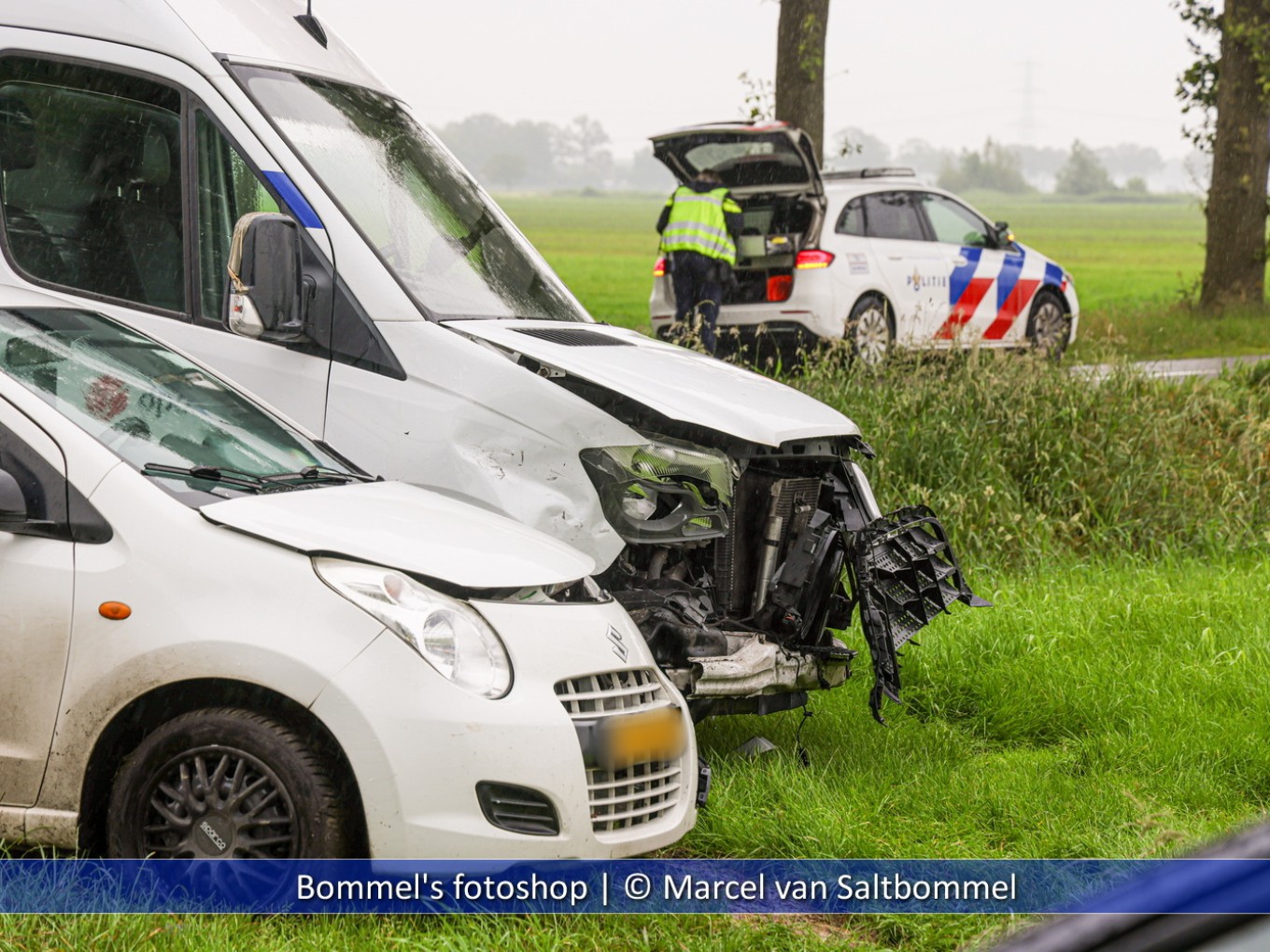 In beide voertuigen zat alleen de bestuurder. Vermoedelijk heeft één van de automobilisten geen voorrang verleend waarna beide auto's in het gras tot stilstand kwamen. De bestuurder van de personenauto is door ambulancepersoneel nagekeken maar het was niet noodzakelijk om hem naar het ziekenhuis te vervoeren. De bestelbus was geladen met pakketjes die overgepakt zullen worden in een andere auto en met vertraging alsnog bezorgd worden. Een bergingsbedrijf heeft de beschadigde voertuigen afgesleept.