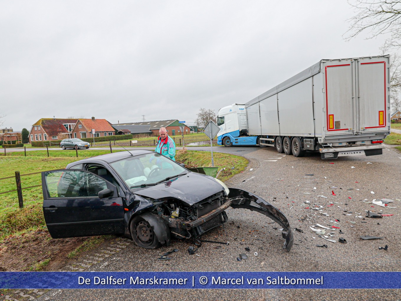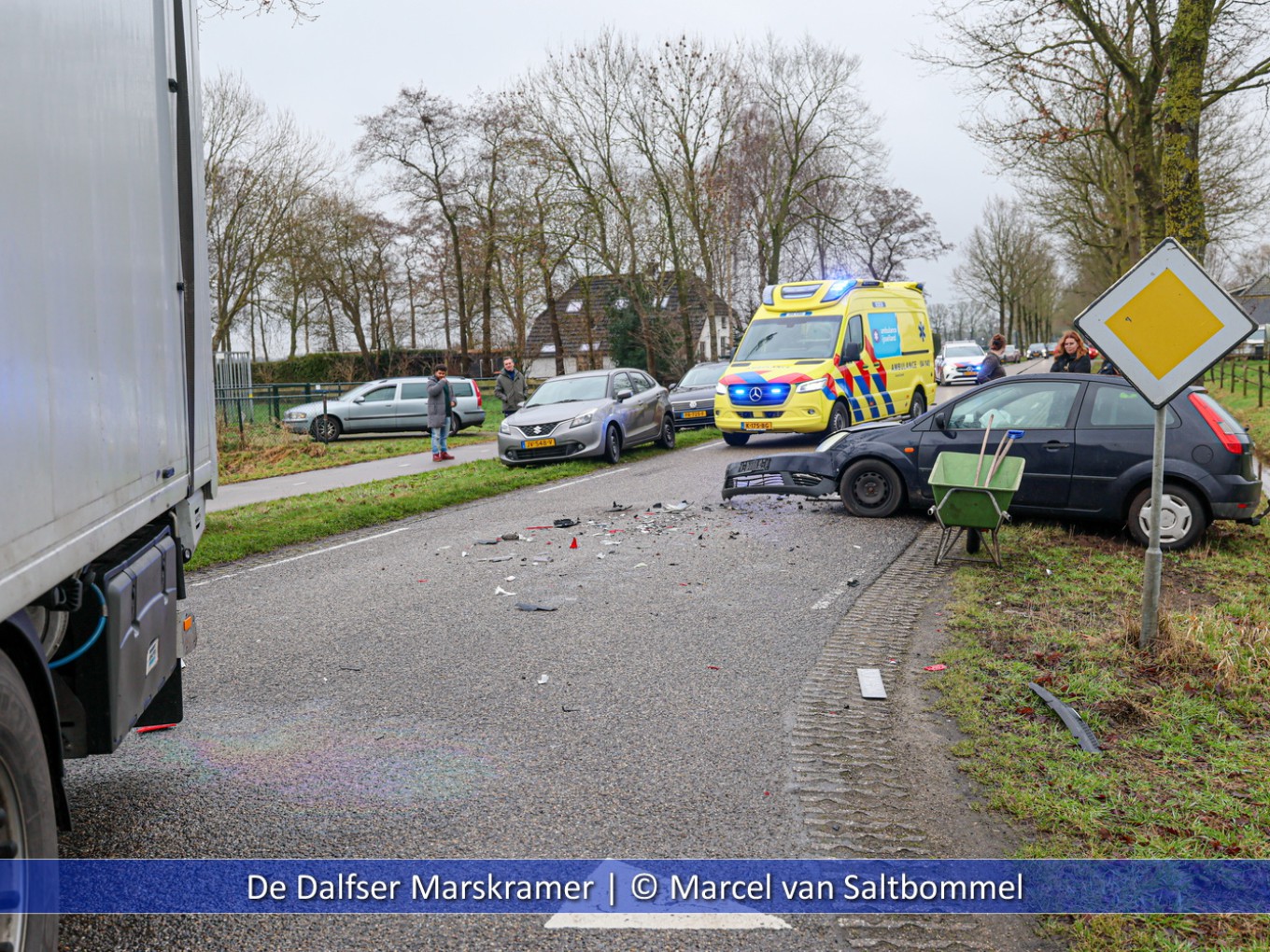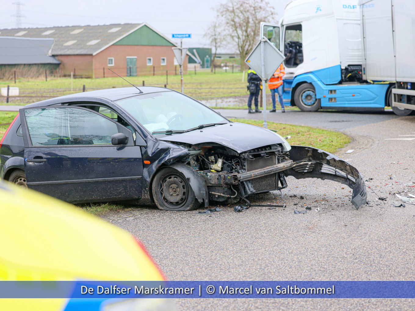Een vrachtwagen combinatie wilde afslaan naar de Schapendrift, achter deze truck reed een personenauto met daarin twee dames. De auto reed tegen de trailer aan en raakte daarbij zwaar beschadigd. Een ambulance die toevallig vlakbij reed heeft alle betrokkenen onderzocht maar niemand hoefde naar het ziekenhuis vervoerd te worden. De personenauto is door een bergingsbedrijf afgesleept.