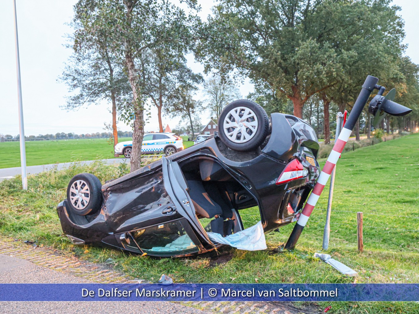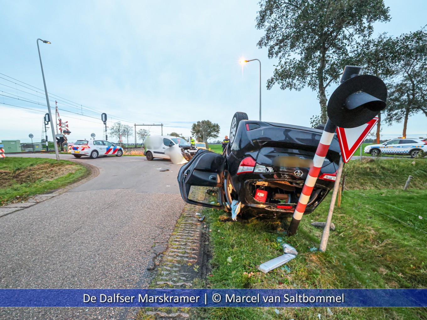 Eén van de voertuigen kwam op het dak terecht tegen een verkeerslicht voor de spoorwegovergang. Alle inzittenden konden op eigen kracht uit het voertuig komen en liepen geen noemenswaardig letsel op. Na het invullen van de verzekeringspapieren en bemiddeling van de agenten werd een bergingsbedrijf gevraagd om beide beschadigde voertuigen af te slepen. Op deze kruising zijn al vele ongevallen gebeurd veelal met letsel.