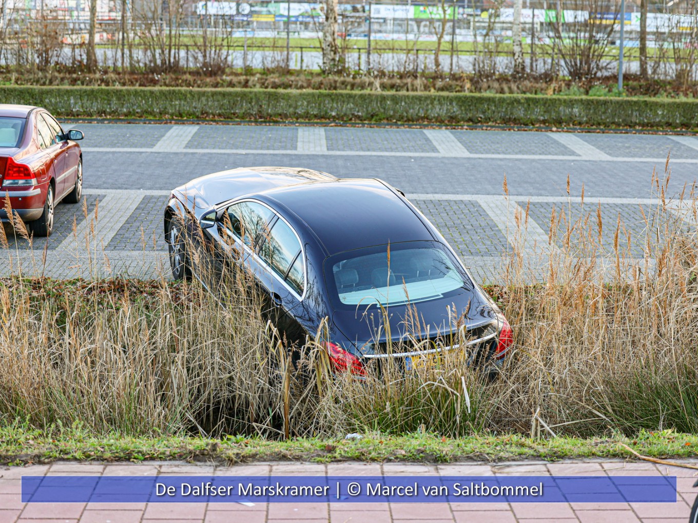 NIEUWLEUSEN - Maandagmiddag rolde een auto in een sloot op de parkeerplaats bij De Spil aan de Julianalaan in Nieuwleusen.