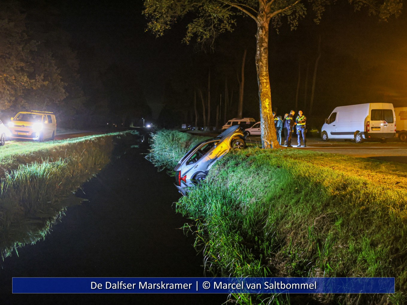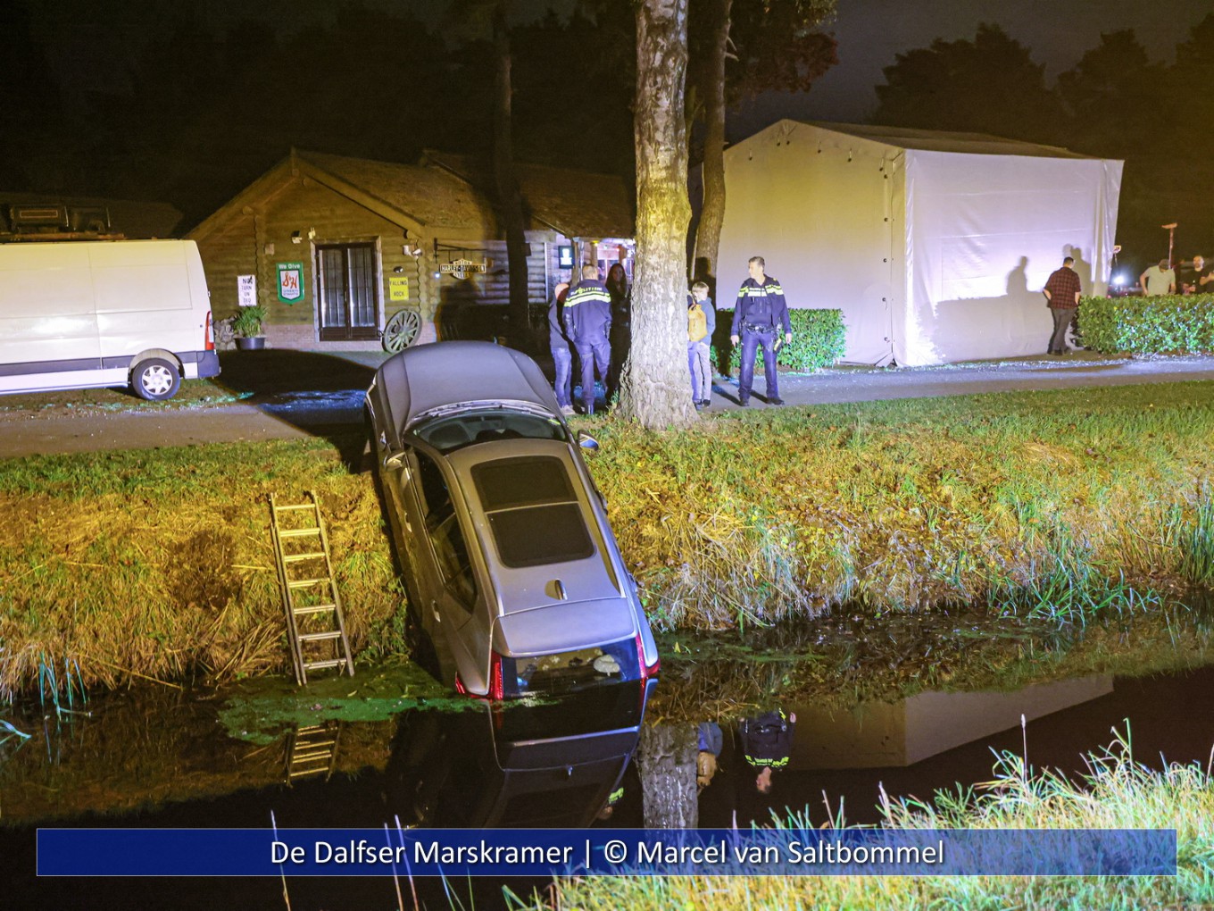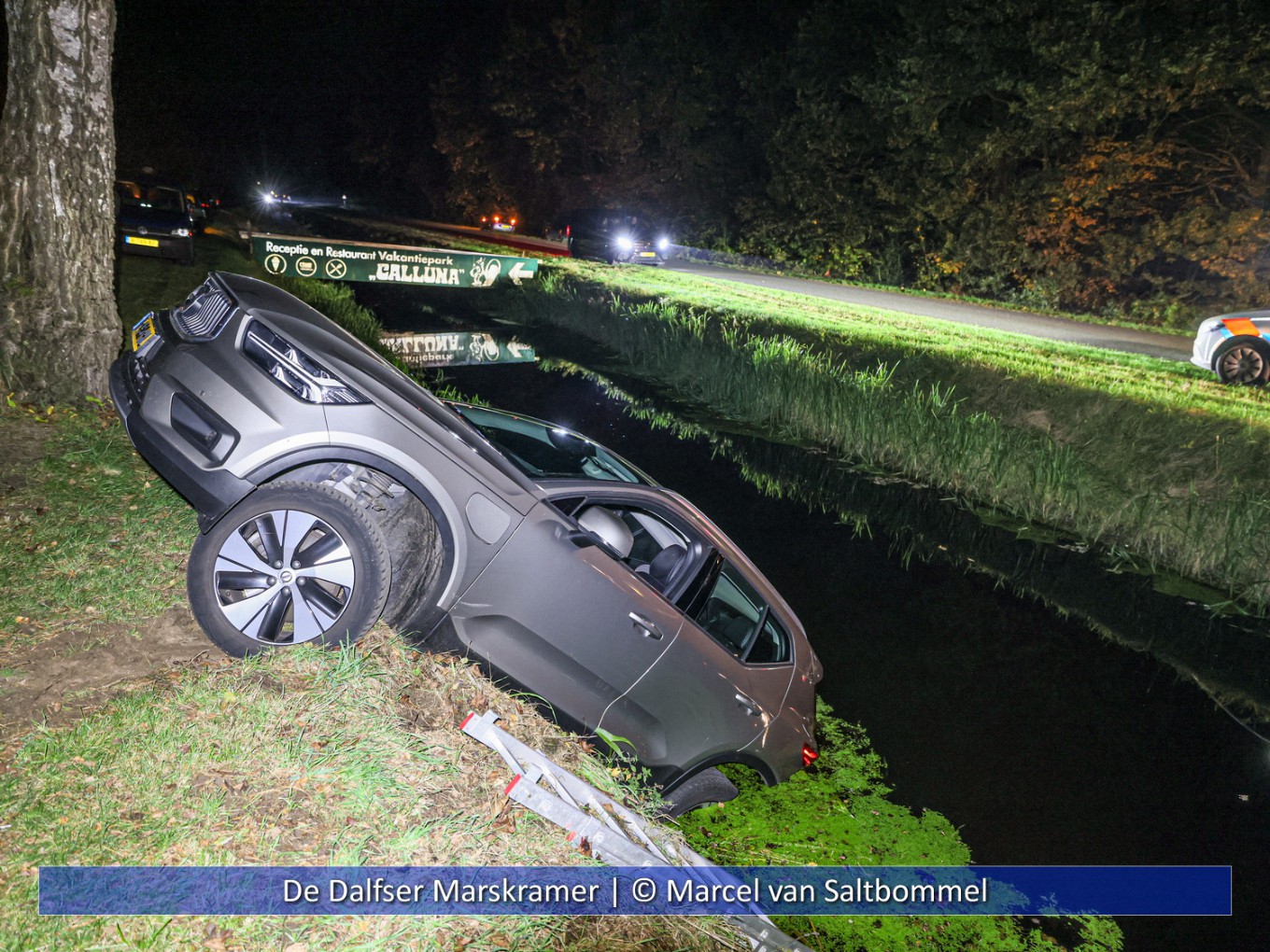 Het voorval deed zich voor op de Stouweweg bij Calluna. De automobiliste had werkzaamheden verricht en wilde naar huis toen ze in het donker achteruit reed ging het mis. De auto bleef gelukkig hangen op de wal en is er door een bergingsbedrijf uitgetakeld. De dame in kwestie liep geen letsel op en er was ook geen sprake van alcohol of drugsgebruik.