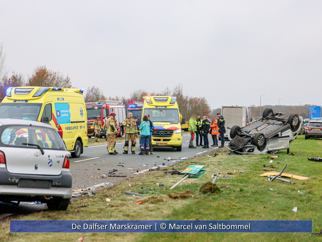 Veel weggebruikers in beide richtingen stopten onmiddellijk om hulp te verlenen. Een ambulance was toevallig vlakbij en kon direct opschalen zodat er voldoende hulpdiensten ter plaatse kwamen. Een Mobiel Medisch Team was ondertussen ook opgeroepen maar deze werd later geannuleerd. Drie ambulances kwamen naar het ongeval toe om hulp te verlenen. Uiteindelijk zijn beide chauffeurs naar het ziekenhuis overgebracht. De ravage aan de voertuigen, verkeersborden en wegdek was groot. De rijstroken richting Zwolle werden volledig afgesloten om alles te kunnen opruimen.