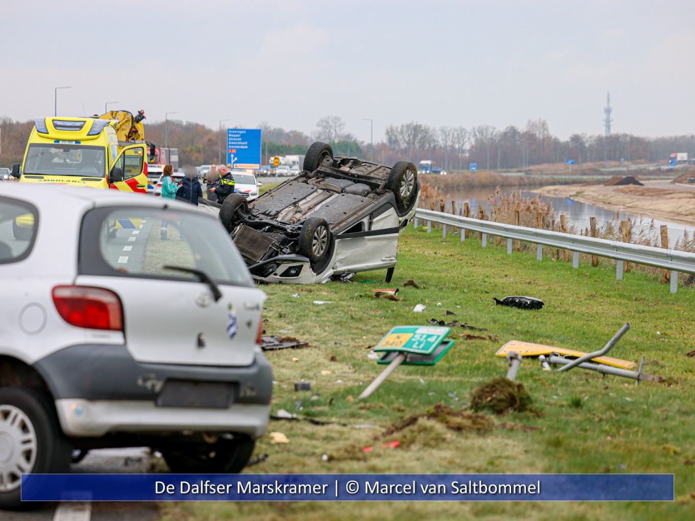 De Dalfsenaar reed vanaf industrieterrein Hessenpoort richting Dalfsen en kwam door onbekende redenen via de middenberm op de rijbanen in de andere richting terecht. Hier reed hij frontaal tegen de auto van een 40 jarige man uit Harderwijk. Deze laatste auto kwam vervolgens op het dak tot stilstand.