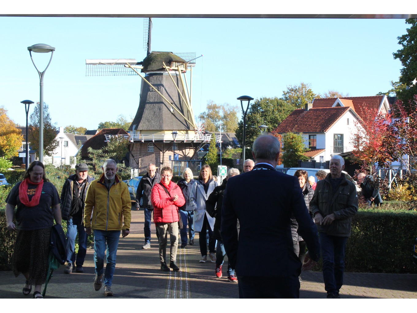 De bus vertrok daarna naar Hoonhorst, waar een heerlijke lunch klaar stond bij Grand Café Kappers. Voorzitter Andries van Daalen van de coöperatie gaf een presentatie hoe het zo was gekomen dat het dorp nu zelf eigenaar is van het café. De Molen van Fakkert was open en de liefhebbers konden die ook nog even beklimmen.