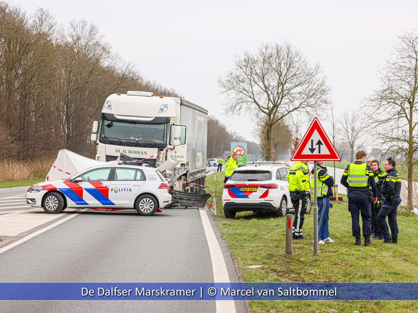 NIEUWLEUSEN - Dinsdagmiddag rond 14.24 uur gebeurde er een zeer ernstige aanrijding tussen De Lichtmis en Nieuwleusen. Op de provinciale weg kwamen een auto en een vrachtwagen met elkaar in botsing.
