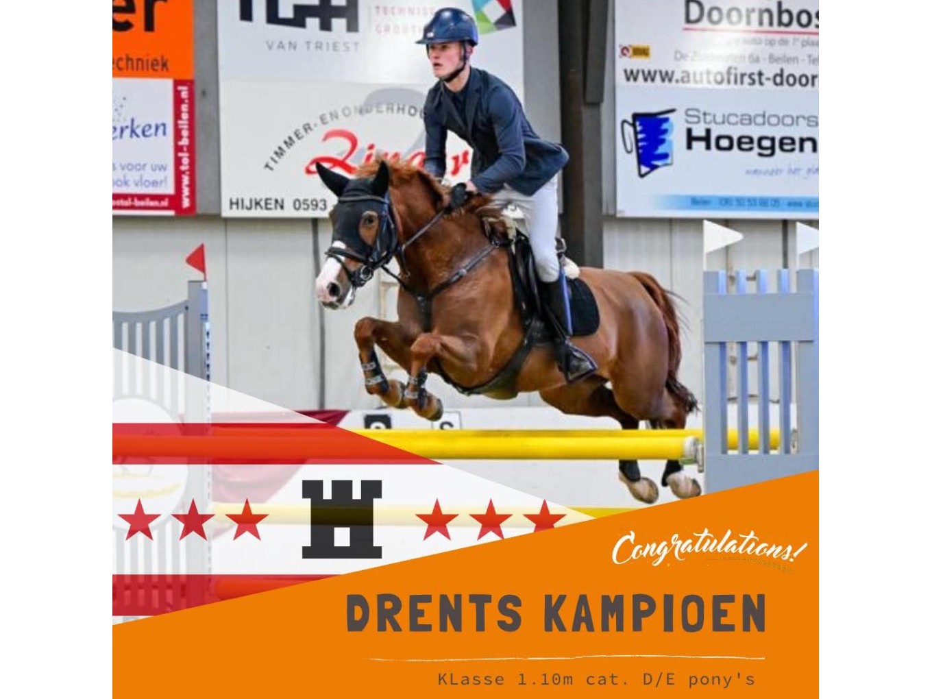 Luna Krul behaalde twee keer de eerste plaats, met Spartacus in de klasse 0.90 cat. C en met Quinty in de klasse 0.90 cat D/E. Elouise Hol eindigde met Diabolo op de eerste plaats in de klasse 0.90 m, paarden. Marcel Schoemaker werd met Quinty kampioen in de klasse 1.10, cat. D/E. Hij heeft nog een ticket bemachtigd voor The Best of Regio Pony Springen tijdens Indoor Brabant.