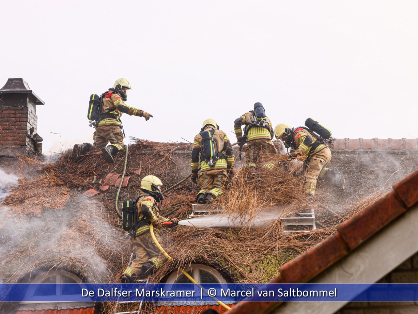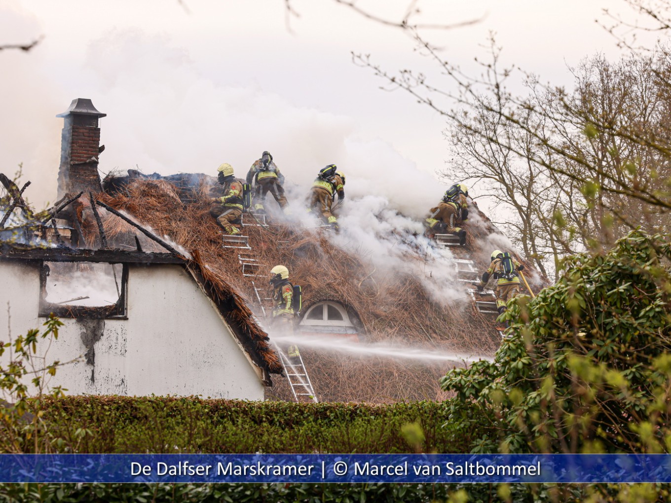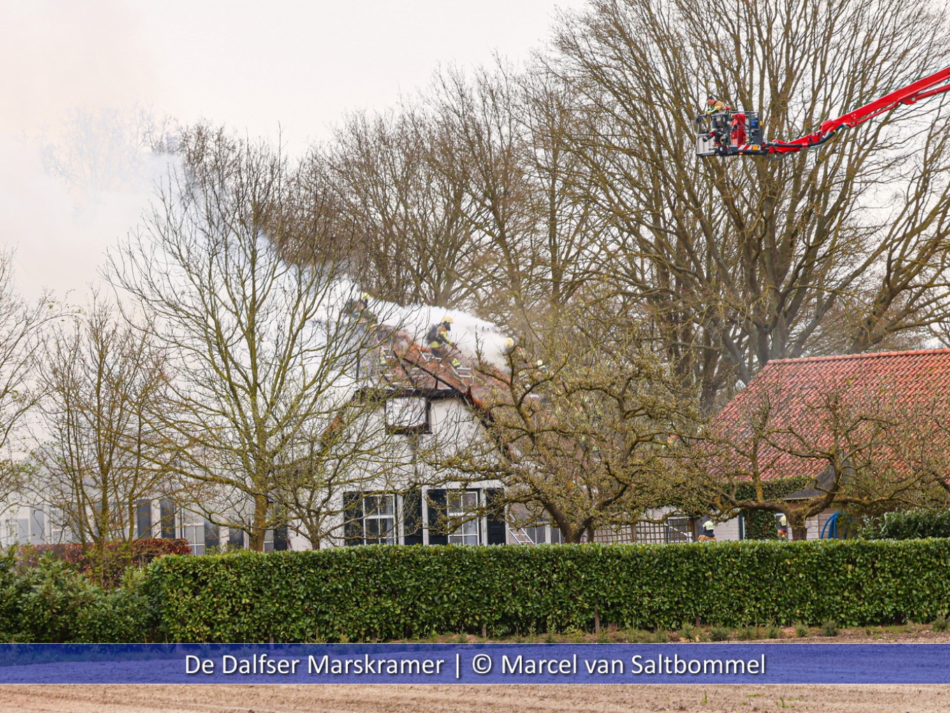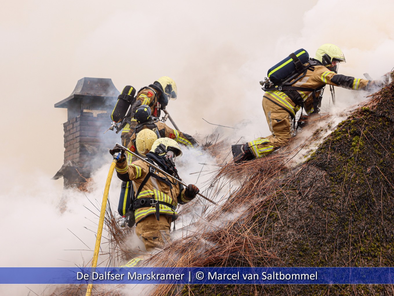 Bij aankomst van het eerste brandweervoertuig, rond half tien, waren er dikke rookwolken niet veel later gevolgd door vlammen uit de rietenkap. De meldkamer van de brandweer heeft in snel tempo veel brandweerposten gealarmeerd om snel veel personeel en materiaal op de plaats van de brand te krijgen. Door de dikke rookwolken had het verkeer op de N340-Hessenweg last. De snelheid werd door de politie en provincie Overijssel aangepast op deze locatie tussen Dalfsen en Ommen. Brandweerkorpsen uit Dalfsen, Nieuwleusen, Ommen, Zwolle, Zuidwolde, Hardenberg, Heino en de veiligheidsregio IJsselland zijn ingezet om hulp te bieden. Brandweer Nieuwleusen beschikt sinds kort over een specialisme rietenkapbrandbestrijding alhoewel dit past officieel in mei van kracht is werd het voertuig vanochtend ingezet om met rietstoeltjes op het dak te kunnen werken. De schade aan de woning is groot en voor de afhandeling met de verzekering werd een coördinator van de stichting Salvage opgeroepen om te bemiddelen en te zorgen voor onderdak voor de bewoners. De bewoners waren op het moment van de brand thuis en konden gelukkig veilig uit de woning komen. Door buren werden ze goed opgevangen en verzorgd ook burgemeester Michael Sijbom kwam deze vrijdagochtend naar het adres om zijn steun te betuigen en hulp te bieden vanuit de gemeente Dalfsen. Na vele uren blussen konden de meeste brandweervoertuig in de loop van de middag weer inrukken.