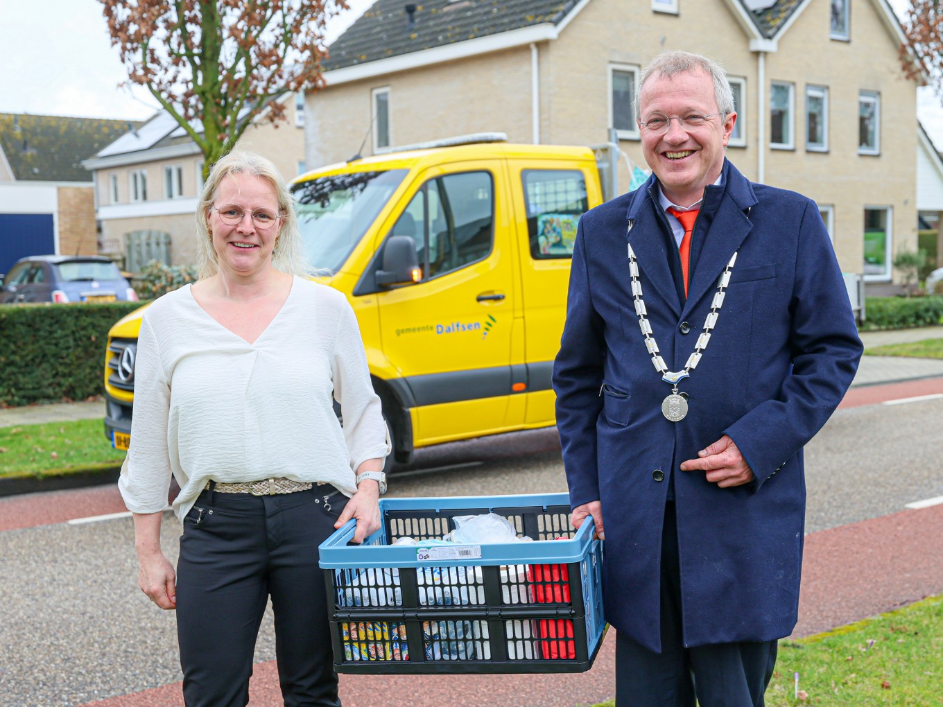 Samen met Bertus Meijer (Openbare Ruimte) en Valerie Schwieters (Communicatie) reed hij zaterdag in een gele bedrijfswagen van de gemeente langs zo’n dertig adressen om de mede-jarigen te feliciteren en de pakketten te bezorgen. Hij reikte onder andere een noodpakket uit aan Sabine ter Wee die haar 52ste verjaardag vierde en aan Katinka Slager die 47 jaar is geworden.