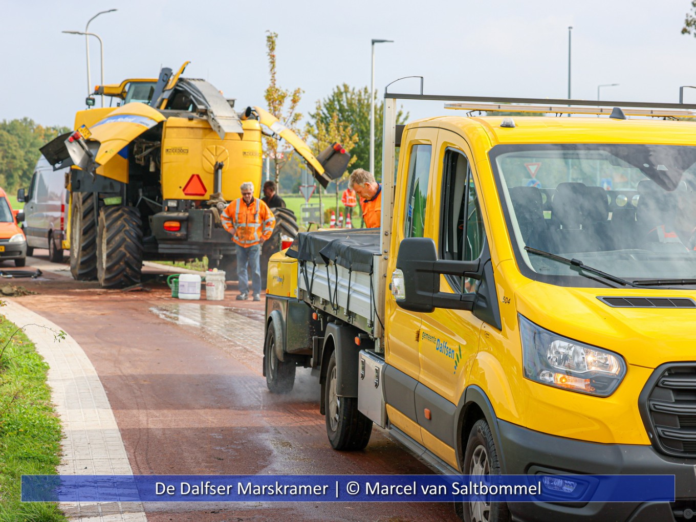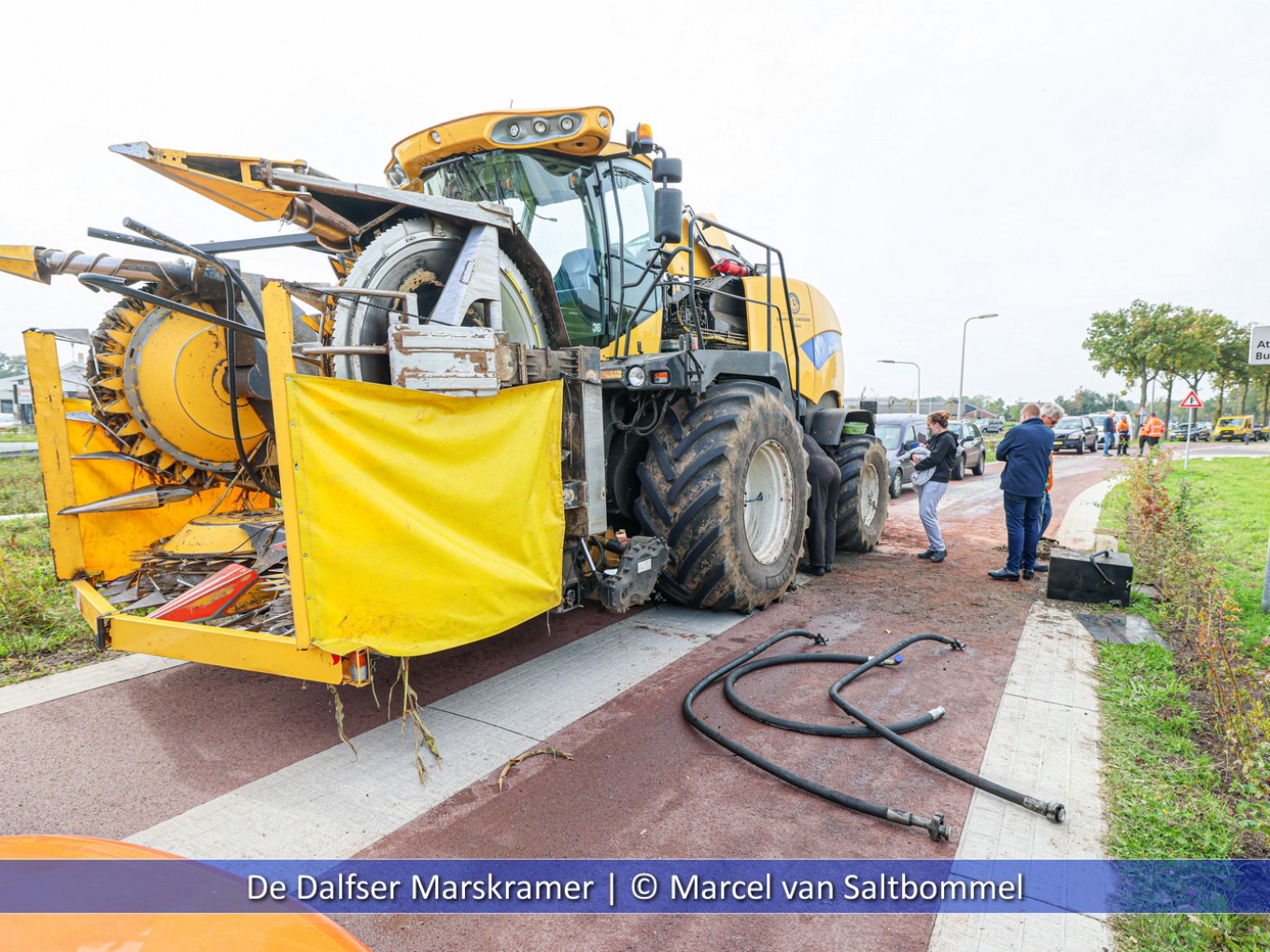 Een hakselaar was tot stilstand gekomen nadat er een hydrauliekslang geknapt was. Op de Parallelstraat lag ondertussen een oliespoor van enkele tientallen meters. Hierdoor was het wegdek erg glad geworden. Toen de motorrijder kwam aanrijden werd hij erop gewezen dat de snelheid niet te hoog moest zijn vanwege het oliespoor. Op dat moment gleed de motor weg en kwam het slachtoffer op de grond terecht. Met een ambulance werd hij naar het ziekenhuis overgebracht. De gemeente is ter plekke gekomen om met een wegdekreiniger de straat te ontvetten. De hakselaar is op de locatie gerepareerd en kon daarna weer ingezet worden op een maïsland.