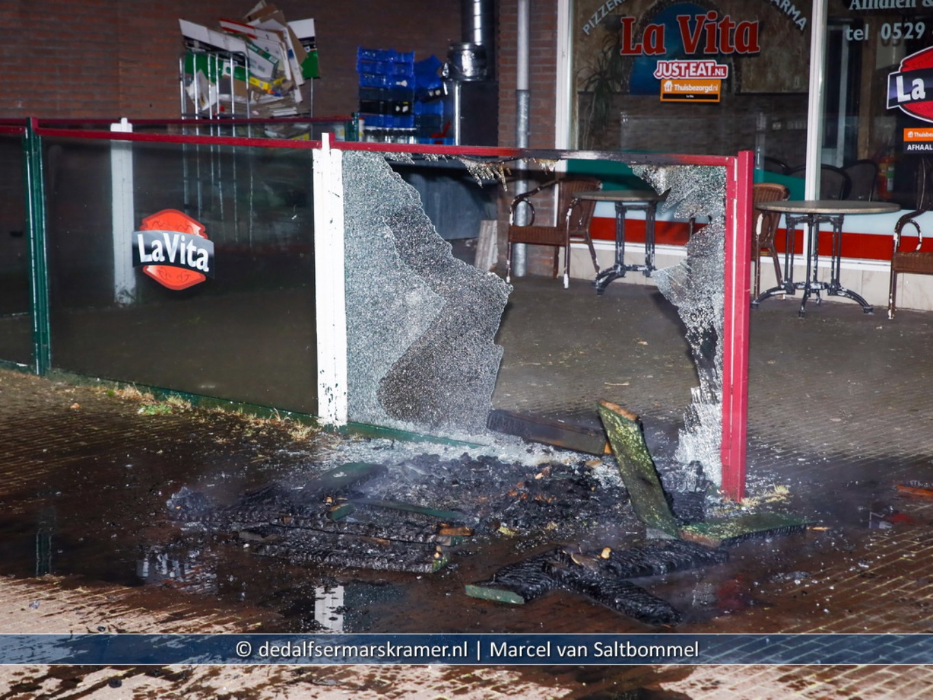 Even voor half vijf werd de brandweer met spoed opgeroepen voor een plantenbak die in brand stond. Door de hitte waren er glasplaten gesprongen. De brand werd opgemerkt door een voorbijganger. Nadat de brandweer klaar was blussen bleef een troosteloze hoop met verbrand materiaal achter. Het is nog onbekend hoe de brand ontstaan is.