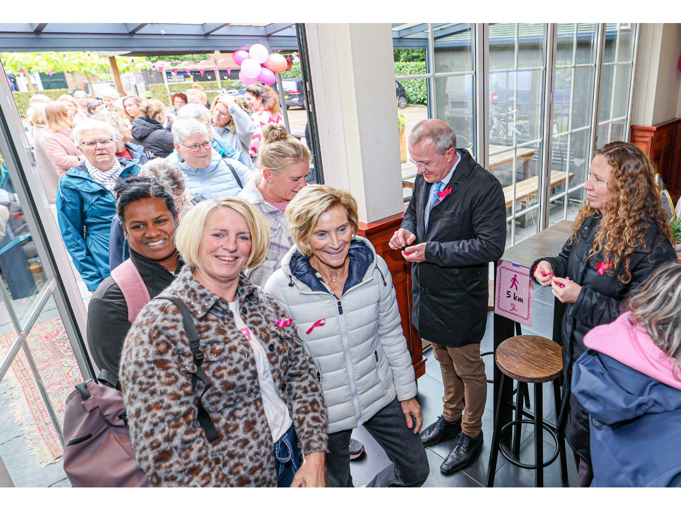 Sabine ter Wee, Petra Durieux, Heidi Popken en Dorien Tuin organiseerden het evenement om geld in te zamelen voor de bestrijding van borstkanker. Burgemeester Michael Sijbom verwelkomde de deelnemers en deelde speldjes uit met het symbool voor Pink Ribbon. De organisatoren zijn heel erg blij met en trots op het resultaat.