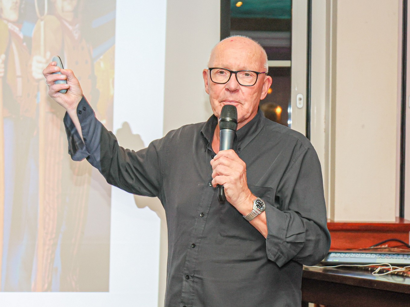 Hij heeft een boek geschreven over de legendarische band - De Schatkamer van Normaal - en daar wilden de echte fans natuurlijk wel meer van weten. Hij diste een aantal leuke anekdotes op en zorgde voor veel herkenning bij de ‘Anhangers’. De band Bezzem - een jonge, Twentse boerenrockband – speelde tussendoor covers van Normaal en bracht de stemming er goed in.