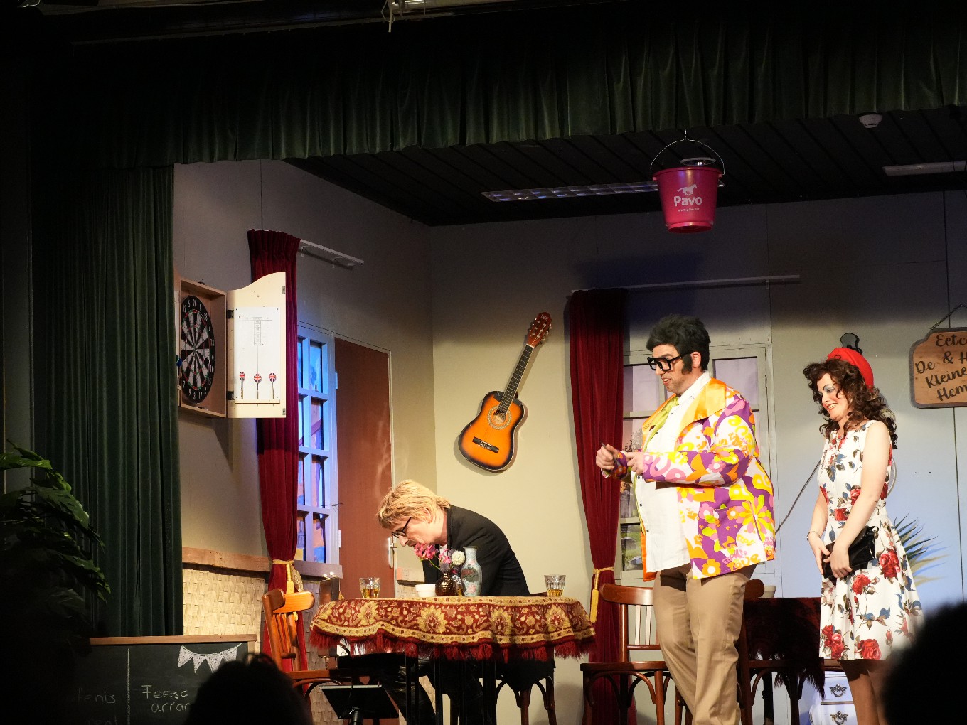 Het klinkt tegenstrijdig, maar toneelvereniging Oleu uit Oudleusen speelde een vrolijk stuk over drie treurende weduwen. Drie avonden lang brachten de acteurs het stuk Drie Droevige Dames op de planken in ontmoetingscentrum De Wiekelaar. Het blijspel - geschreven door Emile Lotz - bevatte veel komische verwikkelingen rondom Cor zijn bouwvallige hotel en eetcafé De Kleine Hemel. Dat lag bij een begraafplaats en de treurende nabestaanden die over de vloer kwamen, vroegen nogal bijzondere gunsten aan uitbater Cor... De spelers kregen de lachers goed op hun hand.
