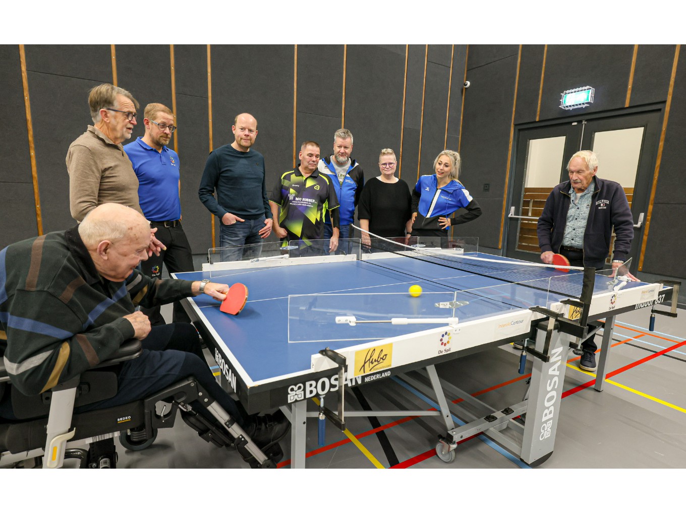 Dankzij aangepaste materialen – zoals een grotere bal, een speciaal batje en een tafel met latjes aan de zijkanten – kunnen deelnemers op een toegankelijke manier toch volwaardig meedoen.