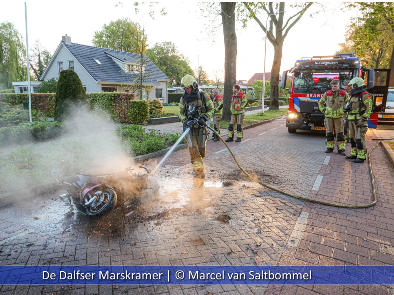 Vlak voor zes uur in de vroege ochtend brak er spontaan brand uit in een scooter. Buurtbewoners hadden de meeste vlammen al met de tuinslang weten te blussen. Brandweer Nieuwleusen heeft de scooter nageblust en het frame is door de bestuurder afgevoerd.