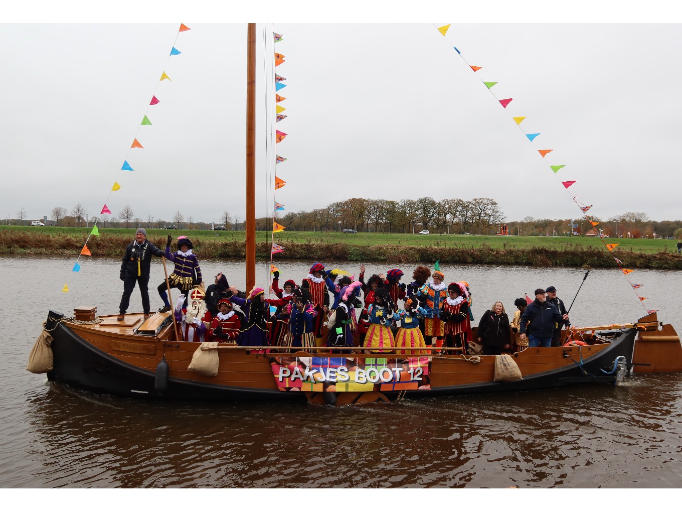 DALFSEN - Direct na aankomst op Texel zette Sinterklaas met zijn roetveegpieten zaterdagmiddag over de Vecht koers naar Dalfsen. Dit jaar was de Vechtzomp omgetoverd tot Pakjesboot 12 omdat de Vechtvaarder uit het water is voor onderhoud.