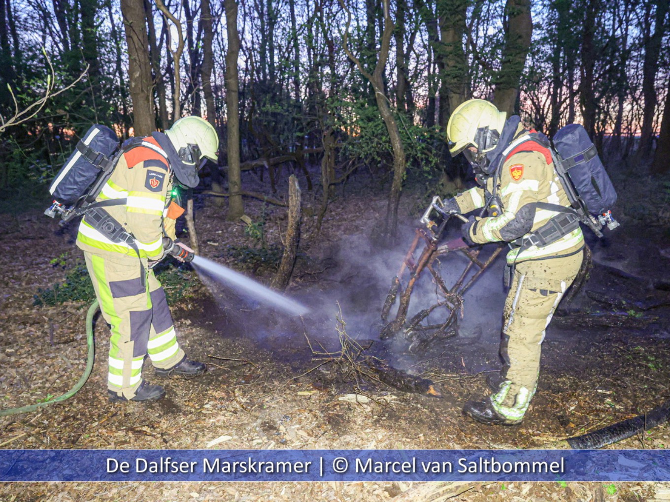 Bij aankomst van de politie en brandweer werden vijf jongeren in de omgeving waargenomen. De politie heeft de jongeren aangesproken en al vrij snel was duidelijk dat ze betrokken waren bij het brandje. Bij de brand was ook een frame van een elektrische fatbike betrokken. Deze tweewieler lag al enige tijd in het bosje bij het viaduct van de Meeleweg. Brandweer Nieuwleusen heeft de brand geblust, door de droogte en veengrond ontstond er kans op uitbreiding van de brand. Politieagenten hebben samen met de jongens naar de ouders gebeld.